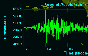 Vertical Accelerations of the 1994 Northridge earthquake (Modified after the USGS).