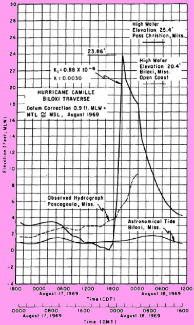 surge hydrographs for Hurricane Camille at Biloxi, Mississippi
