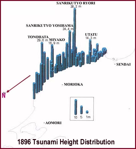Based on data available, it is clear that the March 11, 2011 tsunami was unusually high and destructive. Its impact on Honshu's coasts was very similar or even greater than that of the tsunami caused by the Great Sanriku earthquake of 1896 and much more destructive than that of the Great Sanriku earthquake of 1933. To understand why the tsunami was so unusually high and destructive and what may be expected in the future, a preliminary examination is being undertaken of the earthquake’ focal mechanism, rupture patterns and of the spatial and temporal sequencing and clustering of major aftershocks – which define the limits of crustal displacements, the amount of energy release and the tsunami generating area. To understand the source mechanism of the great earthquake and tsunami that impacted Japan on March 11, 2011 and to evaluate potential future earthquake and tsunami activity, we must examine the seismicity and tectonics of the region aa well as past seismic and tsunami activity. The following sections provide only a brief overview of the seismicity and tectonics of the region and a preliminary analysis of the tsunami's source mechanism that contributed to its severity.