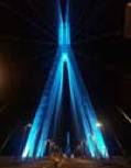 (fig.1) “The Rion-Antirion Bridge has four towers across the length of the structure. The two sides of the gold-painted bridge are illuminated with 560 floodlights equipped with yellow glass filters and visors. Each is positioned to direct a horizontal shadow to the next cantilever on the side of the bridge. The towers are illuminated from the bridge floor with 176 floodlights that cast blue highlights into the dark, night sky” (IALD, 2005, Rion-Antirion Bridge).