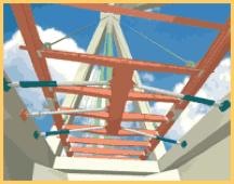 (fig.2) Bridge under construction: fuse restraints & dampers installed on a main pylon. The special fuse restraint system allows for length adjustment. (Wikipedia, 2007)