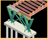 (fig.1) To limit pendulum movement during an earthquake, viscous dampers and a fuse restraint, installed in parallel, anchor’s the deck to the top of each pier. (Gefyra, 2007)