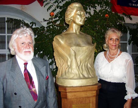Stepahanopoulos unveiling the statues of Lela Carayannis and