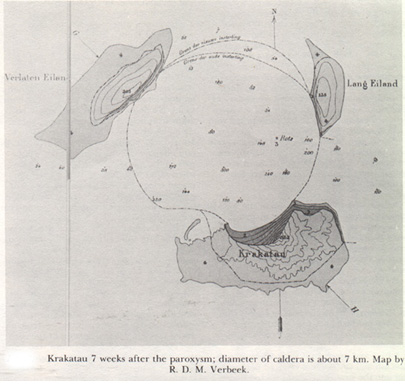 Figure 2. Schematic of Krakatau seven weeks after the paroxysmal phase (After R. D. M. Verbeek, 1884)
